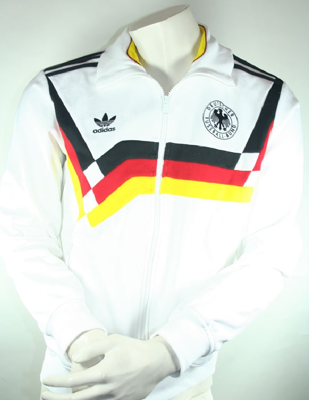 Die letzte Chance auf die originalAdidas Deutschland Jacke TT oder auch Tracktop genannt von der Fußball Weltmeistschaft 90 WM 1990 in Itlaien aus der DfB Adidas Originals Kollektion ist hier bei uns, dem offiziellen Fachhändler für retro Fußballtrikots und Jacken. Verfügbar sind die jacken in jeder Größe noch 1 x, wenn die Jacke in der jeweiligen Größe ausverkauft ist, ist die größe in der Übersicht nicht mehr verfügbar und auswählbar. Verfügbar in den Herren Größe S/M/L/XL und XXL
