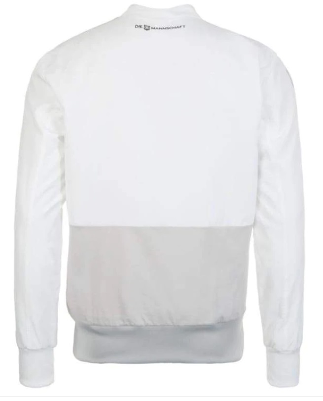 Adidas Germany Deutschland DFB Trainingsjacke Jacke 2018 in weiß grau von der WM 2018, im DFB Design. Die Jacke wurde vor den Spielen getragen 2018, daher auch Pre-Match-Jacke für Vor dem Spiel Jacke. Neu mit Adidas Etiketten