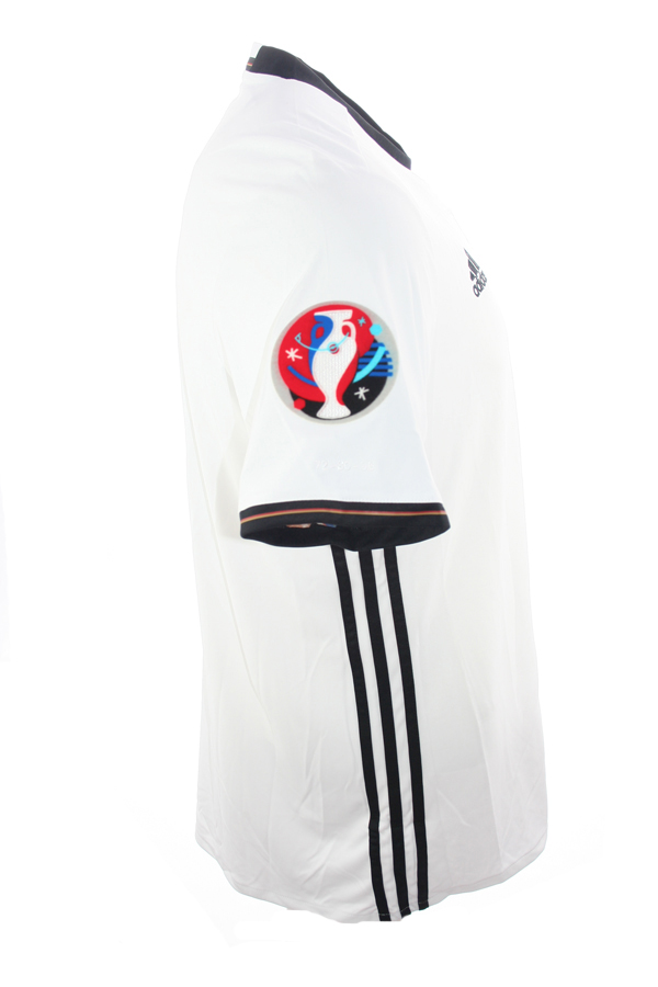 Adidas Deutschland Trikot mit dem Originalflock von der Nummer 11 Marco Reus, so getragen bei der Euro 2016 in Frankreich in der Herrengröße M ist noch ein einziges verfügbar. Hier in der begehrten Heim-Trikot-Variante. Das Trikot mit der Nummer 11 Marco Reus auf Wunsch mit dem Match-Detail Patch aus dem Spiel gegen Italien bei der Euro, welches Deutschland gewann im Elfmeterschießen. Der Patch ist absolut gerade aufgebracht auf Wunsch.