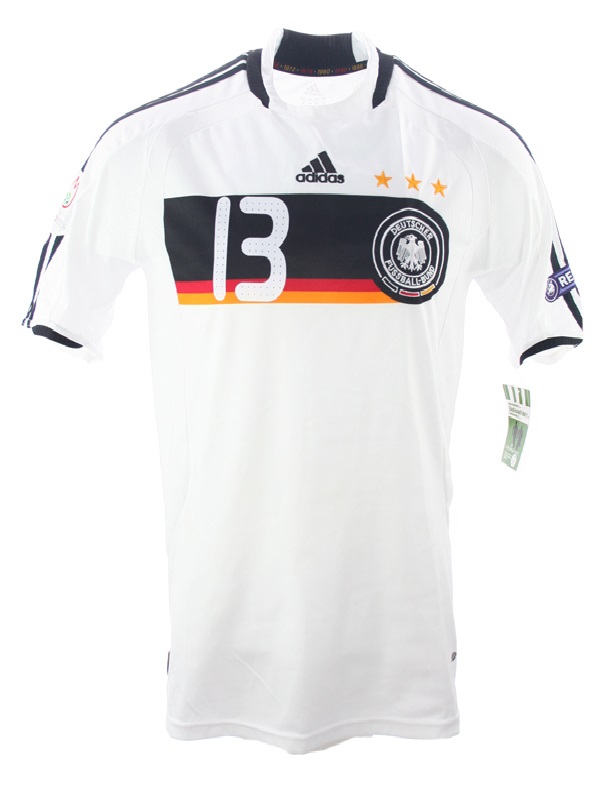 Adidas Climacool Deutschland Trikot von der Nummer 13 Michael Ballack von der Euro 2008 in der Herrengröße L oder XL. Das DFB Trikot kommt in der Farbe weiß, es stammt von der UEFA Euro 2008 in der Adidas Climacool Edition von der Euro in Österreich und der Schweiz!