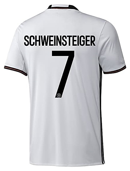 Adidas Deutschland Trikot mit der Nummer 7 Bastian Schweinsteiger von der Euro 2016 in Frankreich, offizielles DFB Heimtrikot, also in der Heimtrkotversion in der Farbe weiß und verfügbar in der Herrengröße XL, ist es noch 1 x verfügbar.