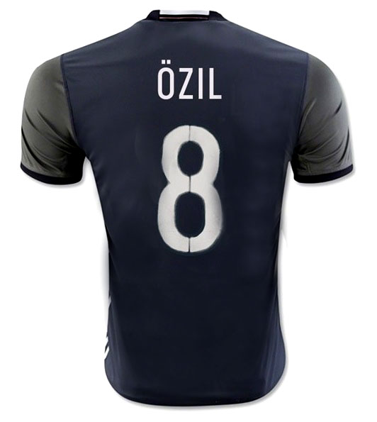 Adidas Deutschland Trikot beflockt mit der Nummer 8 Mesut Özil von der Euro 2016 in Frankreich, offizielles DFB Auswärtstrikot, also in der Heimtrkotversion in der Farbe leicht meliertes Grau und verfügbar in der Herrengröße M, ist es noch 1 x verfügbar.