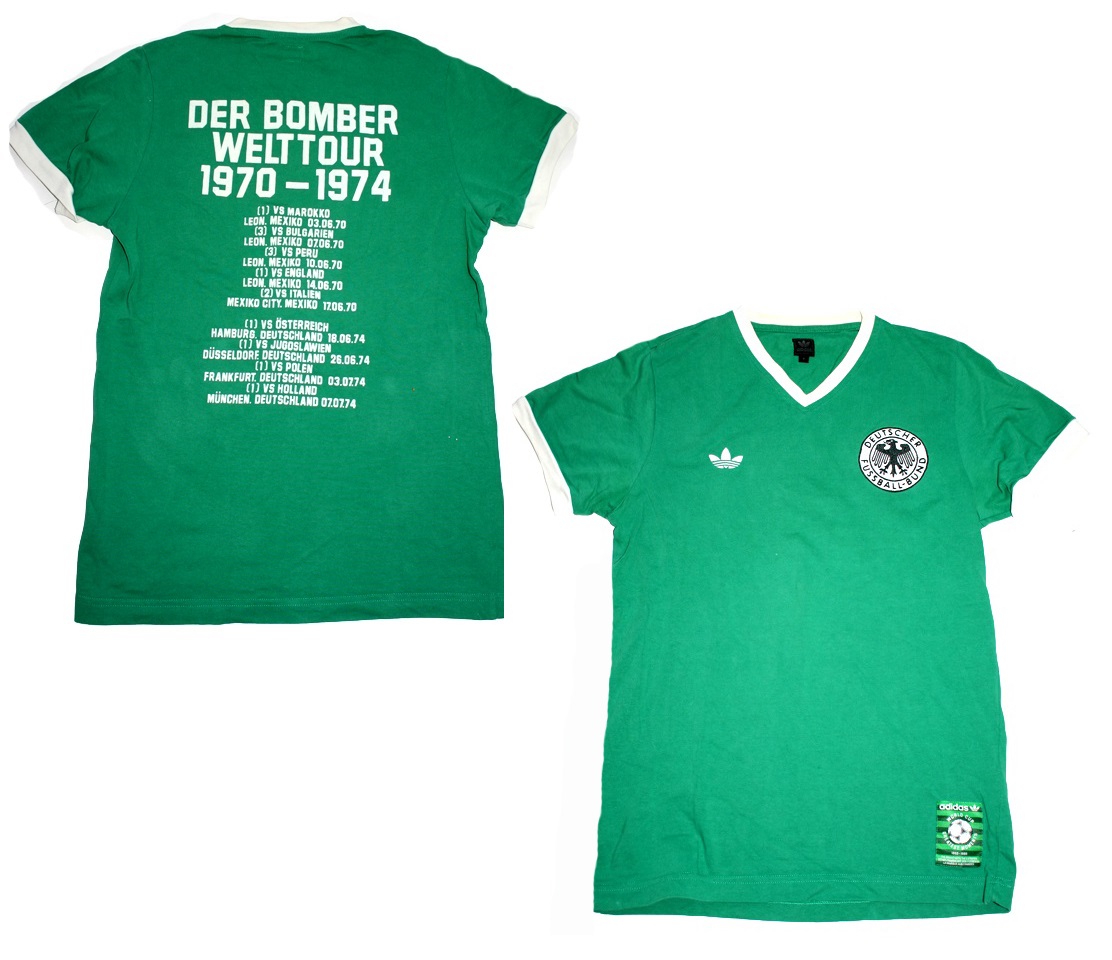 Adidas DFB Deutschland WM Trikot 1974 Gerd Müller, der Bomber der Nation, so ist sein Spitzname gewesen. Verfügbar 1 x in Herrengröße S. Gerd Müller seine Torquote in der Fußball Bundesliga waren 365 Tore in 427 Bundesliga spielen in der Nationalmannschaft schoss der Bomber der Nation von 1966 bis 1974 in 62 Spielen unglaubliche 68 Tore!!!!