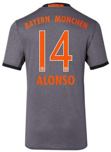 Adidas FC Bayern München Trikot mit der Nummer 14 Xabi Alonso aus der Saison 2016/17. Das Trikot ist in Herrengröße XL. Das Trikot ist die Auswärtstrikotversion der Saison 16/17 in der Farbe Schwarz/Grau/Anthrazit
