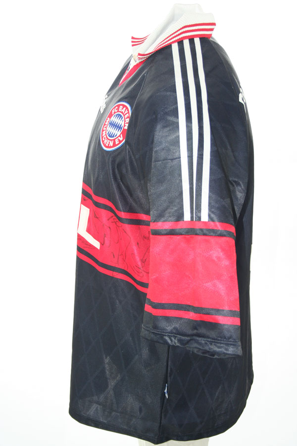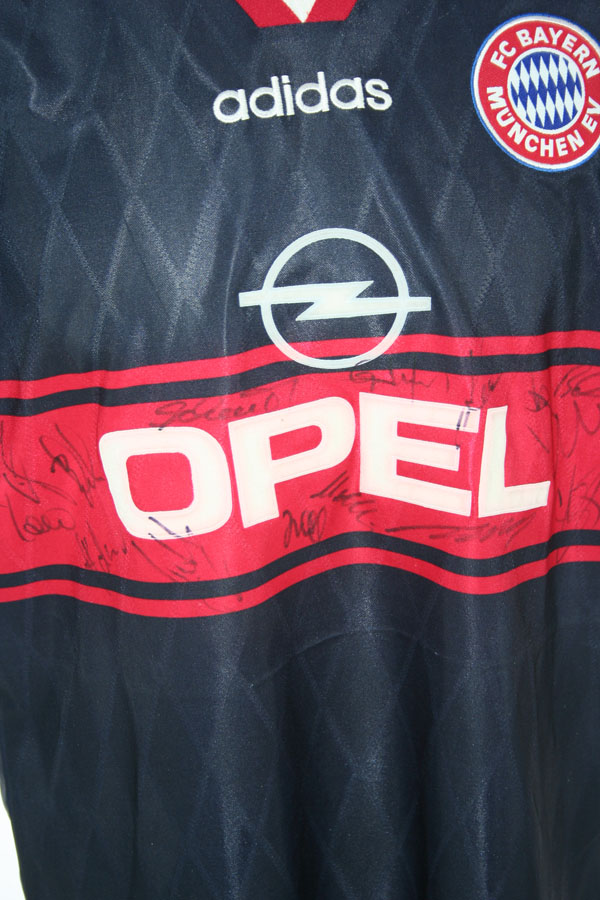 Originales Adidas FC Bayern München Trikot in der Grösse Herren XL mit dem Opel, Sponsor auf der Brust. + Original Bundesliga Logo auf der rechten Schulter, wie ein Fußball Trikot des FC Bayern München das in einem Spiel getragen wurde..Dazu ist das Trikot vom gesamten Kader signiert