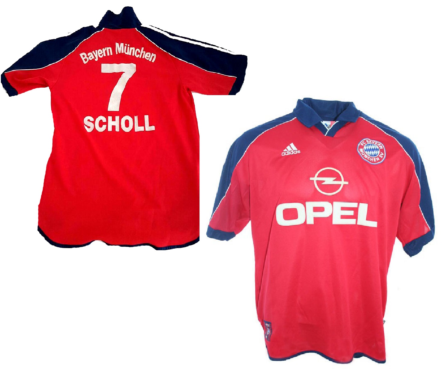 Adidas FC Bayern München Trikot mit der Rückennummer 7 Mehmet Scholl aus der Saison 1999/01 mit dem Brustsponsor Opel in der Herrengröße L