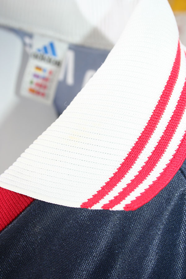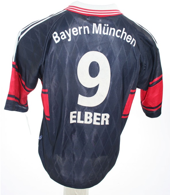 Adidas FC Bayern München Trikot mit der Nummer 9 Giovane Élber so getragen in der Spielzeit von 1997/98, mit dem damaligen Opel Sponsor auf dem Trikot. Das Adidas FC Bayern München Trikot ist in Herrengröße L. B-Ware heißt, eigentlich ist der Zustand zeitgemäß sogar, aber ich habe keine große Lust auf ärger, es mehrere Ziehfäden, was expleziet bei den Triktos um 1998 von Adidas standard ist, keine Löcher und sonst ist alles heile.