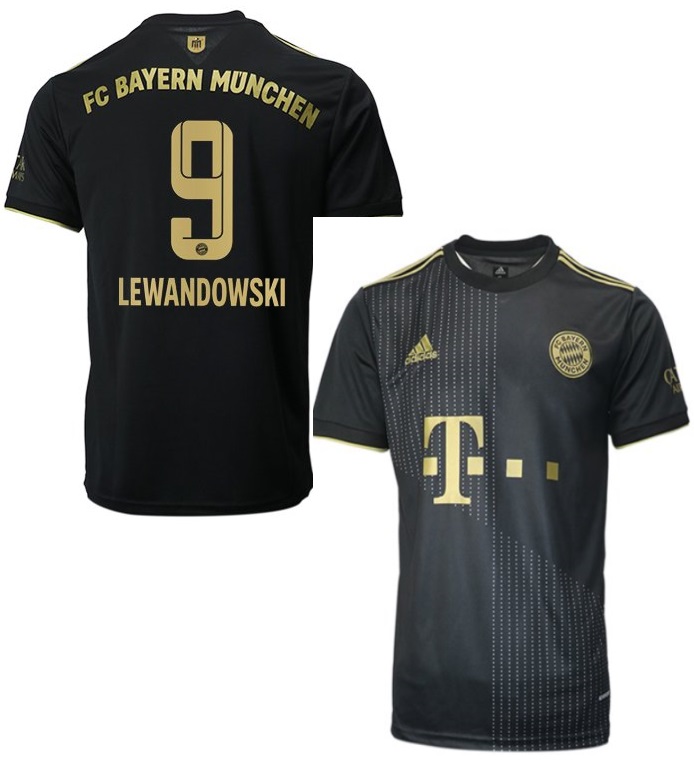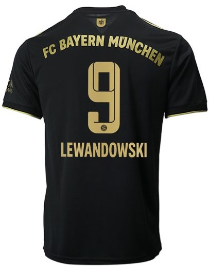 Adidas FC Bayern München Trikot mit der Nummer 9 Robert Lewandowski aus der Saison 2021/22. Das Trikot ist in Herrengröße M ist es 1 x verfügbar. Es ist das schwarz goldene Trikot welches sowohl in der Bundesliga als auch in der UEFA Champions League zum Einsatz kam.
