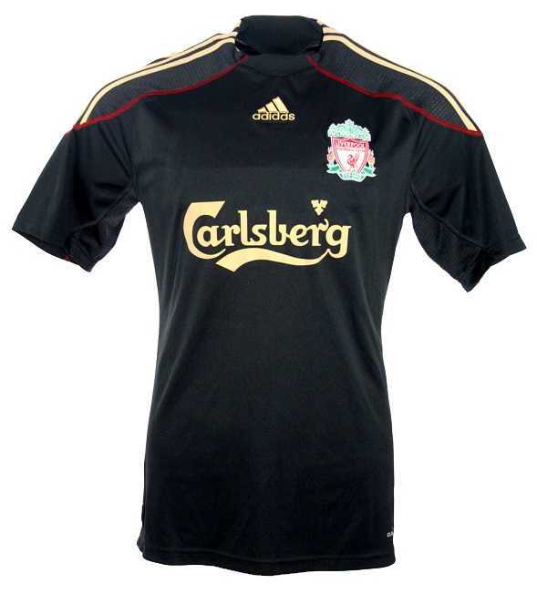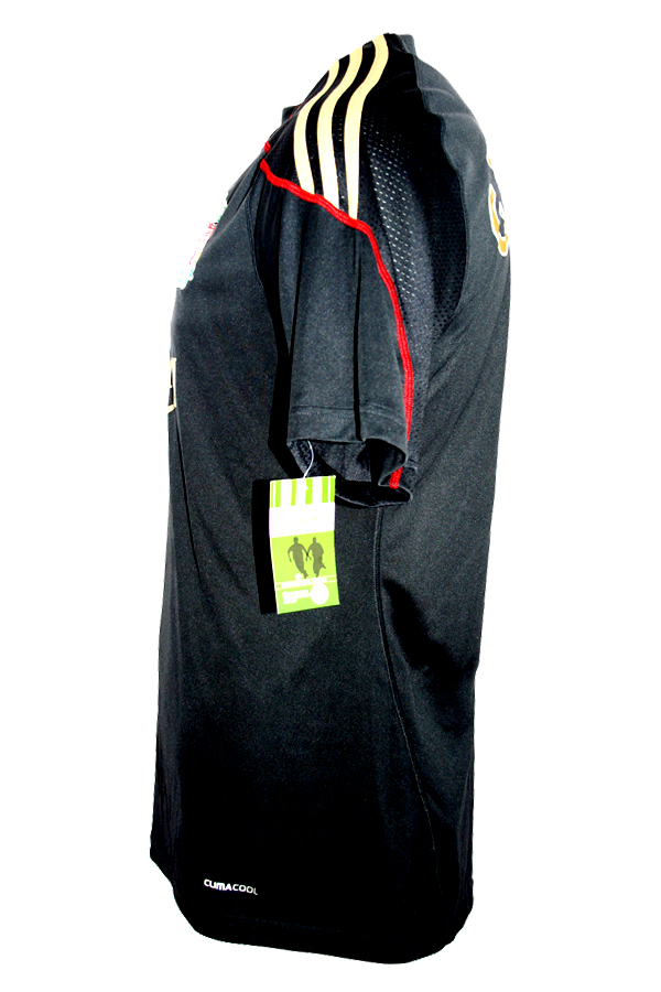 Adidas FC Liverpool Trikot beflockt mit der Nummer 8 Steven Gerrard aus den Saisons 2009/10 so getragen, hier verfügbar noch einmal in der Herrengröße M oder L ist es jeweils 1 x verfügbar, in der Farbe Schwarz mit Gold in der Auswärtstrikotversion mit Adidas Climacool Technologie. Die Rückennummer ist golden.