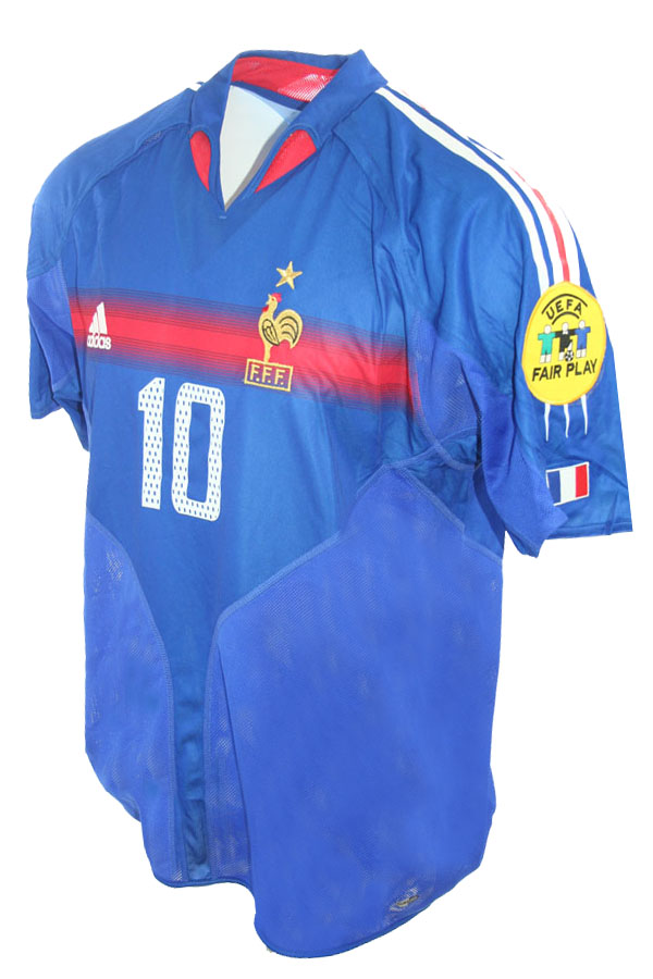Adidas Frankreich Trikot von der Euro 2004 von Zinedine Zidane mit der Nr. 10. Verfügbar in der Herrengröße S/M/L oder XXL. Sehr seltenes Top Trikot vom Superstar Zinedine Zidane, das Trikot ist das Heimtrikot in der Farbe Blau, wenn ich im Internet mal herumschaue, siind die letzten 3 Trikots hier, offenbar die letzten 3 originalen Trikots.