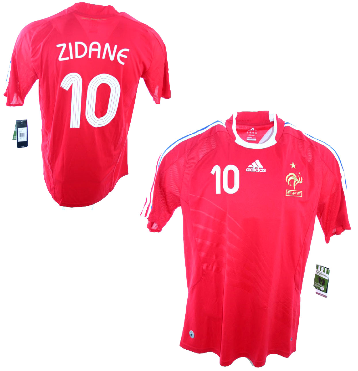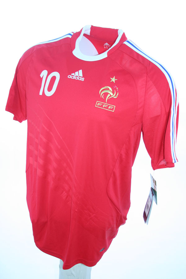 Adidas Frankreich Trikot mit der original Beflockung 10 Zinedine Zidane von der WM 2006/2008 in der Farbe Rot, das Adidas Frankreich 2006 Trikot ist Neu mit Adidas Etiketten und 1 x noch verfügbar in Herrengröße L.