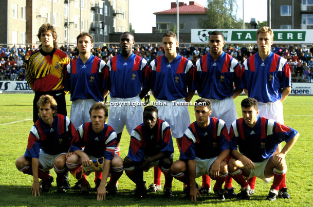 ein sehr seltener schatz, ein U21 Trikot vom späteren Superstar Zinedine Zidane, hier noch oftmals mit der Nummer 6 Unterwegs in der U21 Frankreichs, ein wirklich sehr sehr exklusives Stück, mit volem Haar wie auf dem bild kaum wieder zu erkennen! So getragen am 07.09.1993, im TAMMELA STADIUM, von Frankreichs U-21, die Aufstellung ist auf dem Bild unten zu sehen, zidane ist unten Rechts in der Ecke. das Spel fans in Tampere, Finnland statt. Es war ein UEFA under-21 European Championship Qualifikationsspiel zwischen, Finnland und Frankreich.