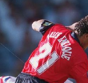 Adidas Spanien Trikot beflockt mit der Nummer 21 Luis Enrique welches genauso bei der Euro 1996 bei der EM 96 in England so getragen wurde in der Heimtrikotversion, in der Farbe rot. Verfügbar ist es nur ein einziges mal in der Herrengröße L. Es ist ein 100 % matchworn Trikot vom Spiel gegen Frankreich!