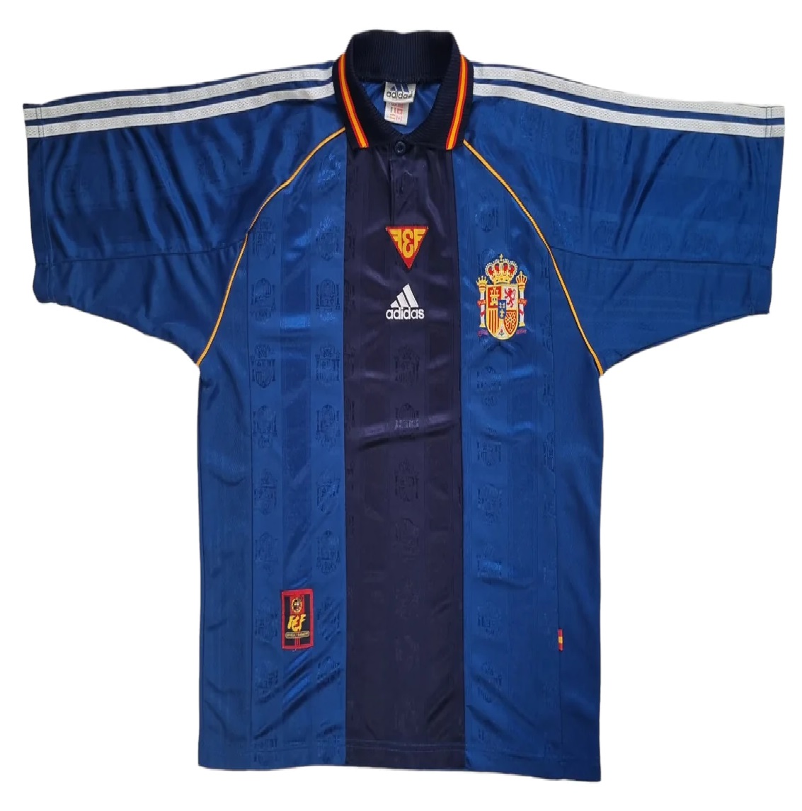 Adidas Spanien Trikot von der WM 1998 hier in der Auswärtstrikotversion in der Farbe marine blau in der Herrengröße