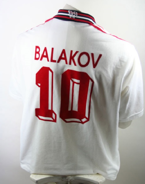 Adidas VfB Stuttgart Trikot mit der Beflockung 10 Krassimir Balakov aus der Saison 1997/98 in der Herren Größe XS = Kindergröße 164 cm