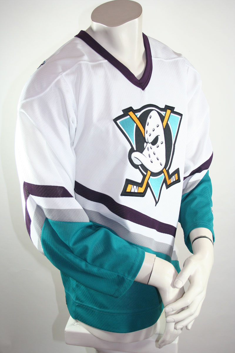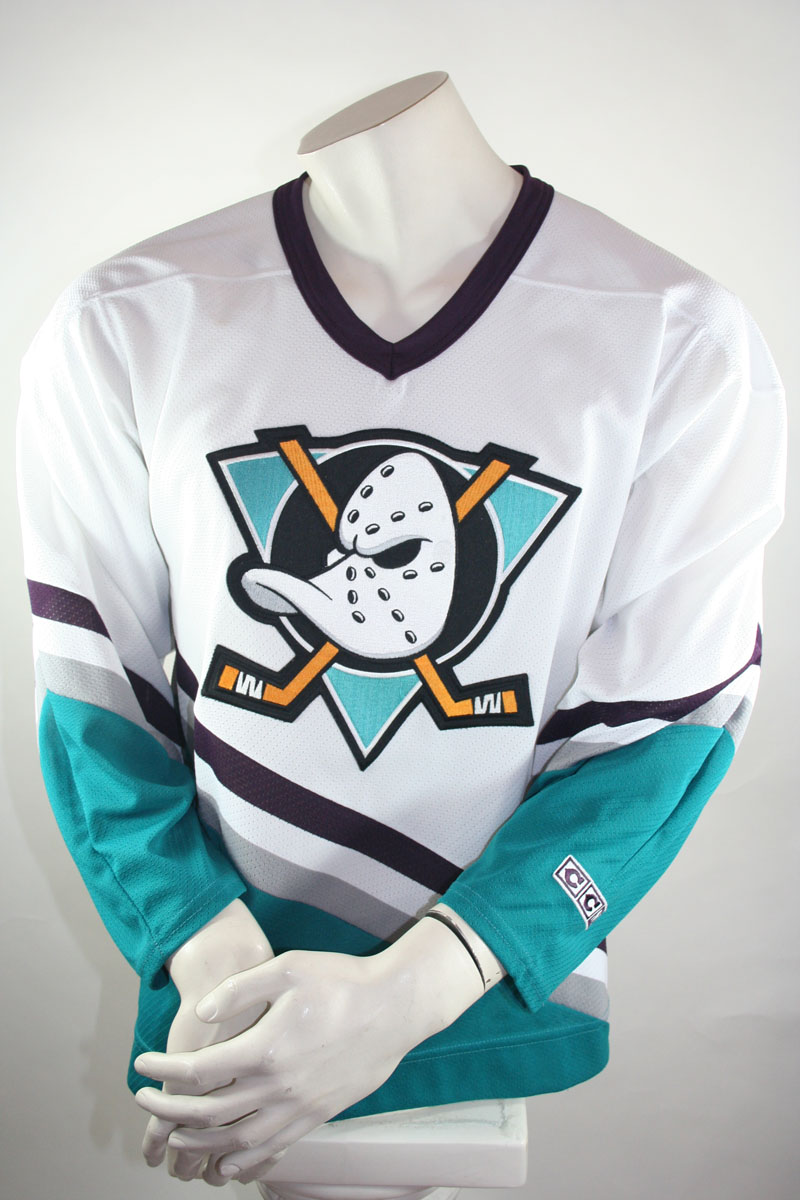 Anaheim Mighty Ducks Trikot von CCM, dem damaligen offiziellem NHL Ausrüster, dieses Trikot ist in der Herren Größe S verfügbar und unter dem damaligen Besitzer der Walt Disney Company produziert wurden. In diesem Design von 1993 bis 2006.