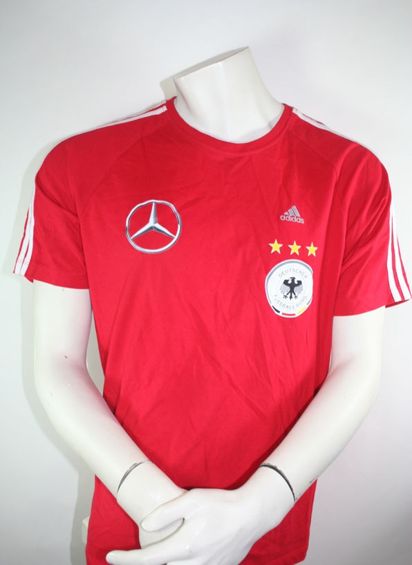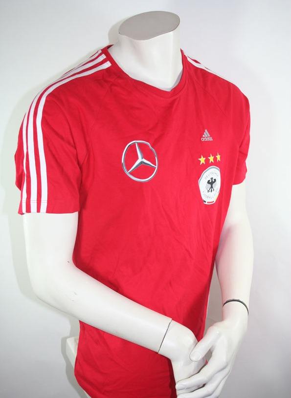 Deutschland T-Shirt vom Ausrüster Mercedes-Benz offizielle Teamwear getragen von Jogi Löw, das Shirt ist in Größe M und von Adidas. Die Farbe ist Rot.