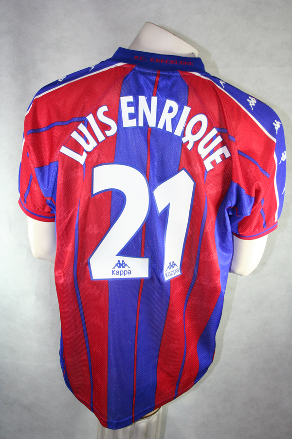 Nike FC Barcelona Trikot mit der original Beflockung von der Nummer 21 Luis Enrique aus der Saison 2001/02 in der Herren Größe XL.