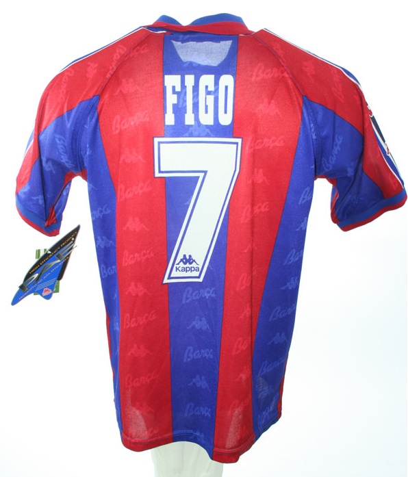Kappa FC Barcelona Trikot von der Nummer 7 Luis Figo aus der Saison 1996/97 in der Herrengröße M. Das Trikot ist Neu mit Etiketten.