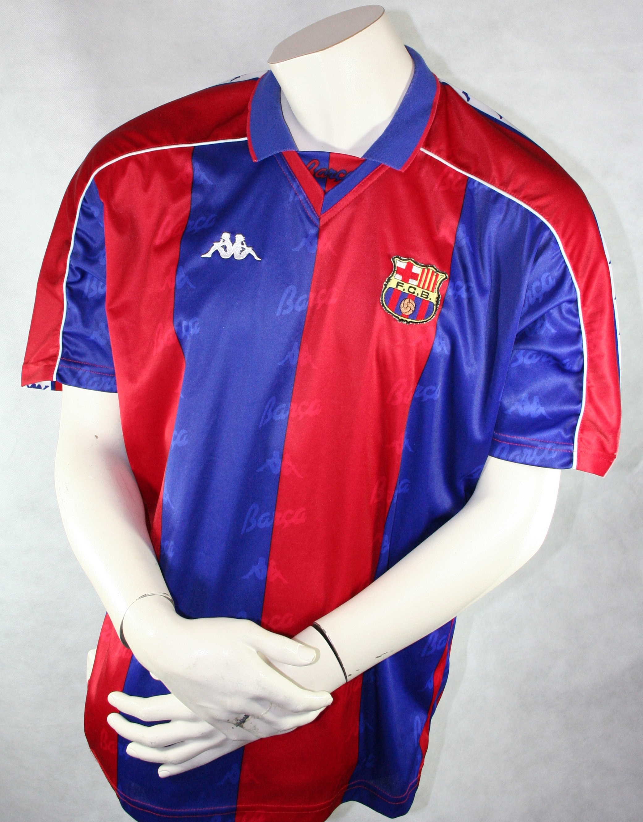 Kappa FC Barcelona Trikot von der Nummer 8 so getragen in den Saisons 1993 bis 1995 (1993/94 und 1994/95) verfügbar ist das Fußballtrikot in der Herrengröße XL. Die Trikots hatten damals noch keinen Namen auf dem Trikot, daher ist dieses Trikot 1:1 wie das Matchworn Trikot von Hristo Stoichkov, genauso mit dem Flock in dem Design wurde es in der Spanischen Liga genauso getragen im UEFA Cup und der Champions League ohne Kappa Logo