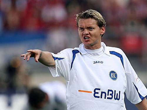 Karsruher SC Trikot getragen von der Nummer 2 Bradley Carnell also Matchworn mit dem Brustsponsor EnBW vom Hersteller Jako offizielles KSC Trikot in Größe L.