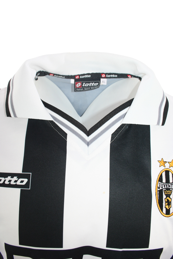 Lotto Juventus Turin Trikot mit der original Beflockung 9 Filippo Inzaghi aus der Saison 2000/01 mit dem Brustsponsor Tele+ in der HerrengrößeXL.
