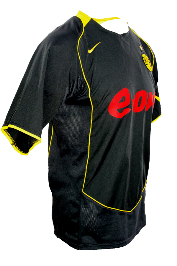 Nike Borussia Dortmund Trikot mit dem Namen und der Nummer 14 Smolarek aus der Saison 2004/05 mit dem Sponsor E-On in der Auswärtstrikotversion in der Farbe Schwarz vom BVB, ist 1 x verfügbar in Herrengröße M.