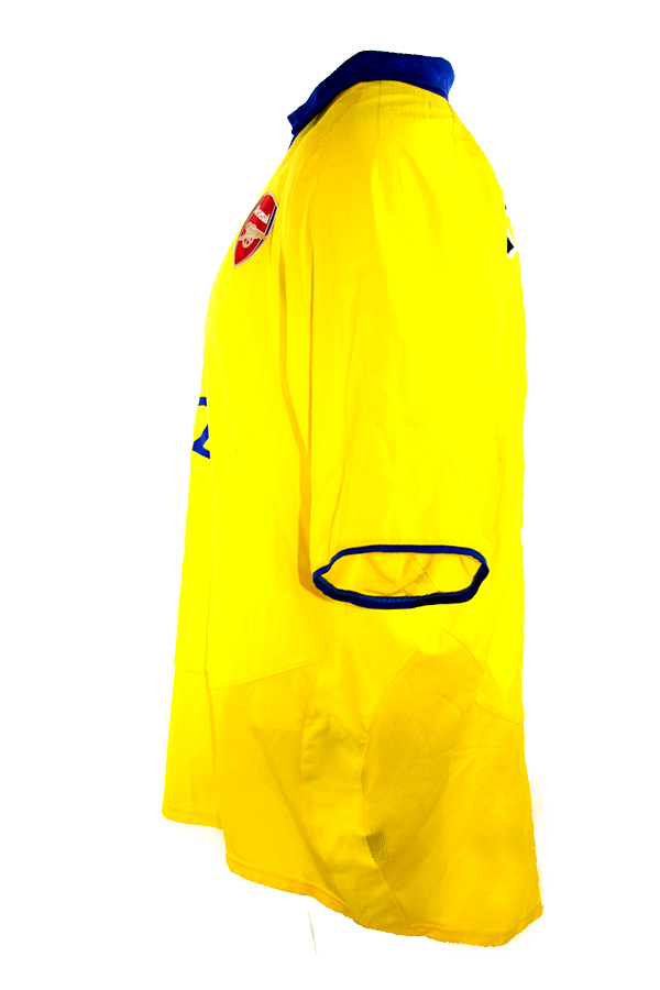 Nike FC Arsenal Trikot 14 Thierry Henry 2003/04 mit dem Spnosor O2 in der Farbe Gelb, Auswärtstrikots aus der Premier League mit Premier League Patches, verfügbar 1 x in der Herrengröße 2XL/XXL, Arsenal war ungeschlagen von Mai 2003 bis Oktober 2004, also in der gesamten Saison 2003/04 und darüber hinaus.