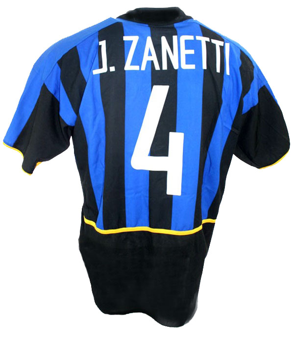 Nike Inter Mailand Trikot mit der Beflockung 4 Javier Zanetti aus der Saison 2002/03 in der Farbe Blau Schwarz, also in der Home/Heim Trikotversion von Inter Mailand, hier in der Herren Größe XL