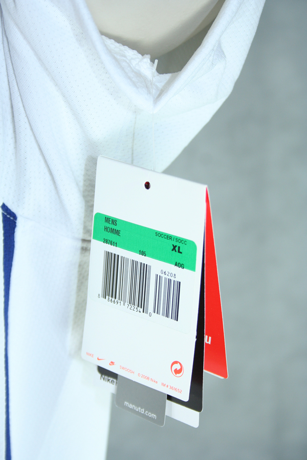Nike Manchester United Trikot und dem Sponsor AIG mit der NikeFit Dri-Fit Technologie aus der Saison 2008/09 in der Farbe Weiß in der Herrengröße XL, neu mit Etiketten, ein echtes original Trikot schon alleine an dem Etikett und dem design des Etiketts zu erkennen, dass es orginal ist. Hier schwierig zu erkennen was original ist, an dem Sponsor und dem Schnitt sowie den nähten in dem Jahrgang, meistens auch bei nachgemachten Trikots, dass das Emblem schon komisch aussieht von Manchester United. Hier 100 % und ohne jeden Zweifel original. Es gibt nur ein einziges in XL noch!