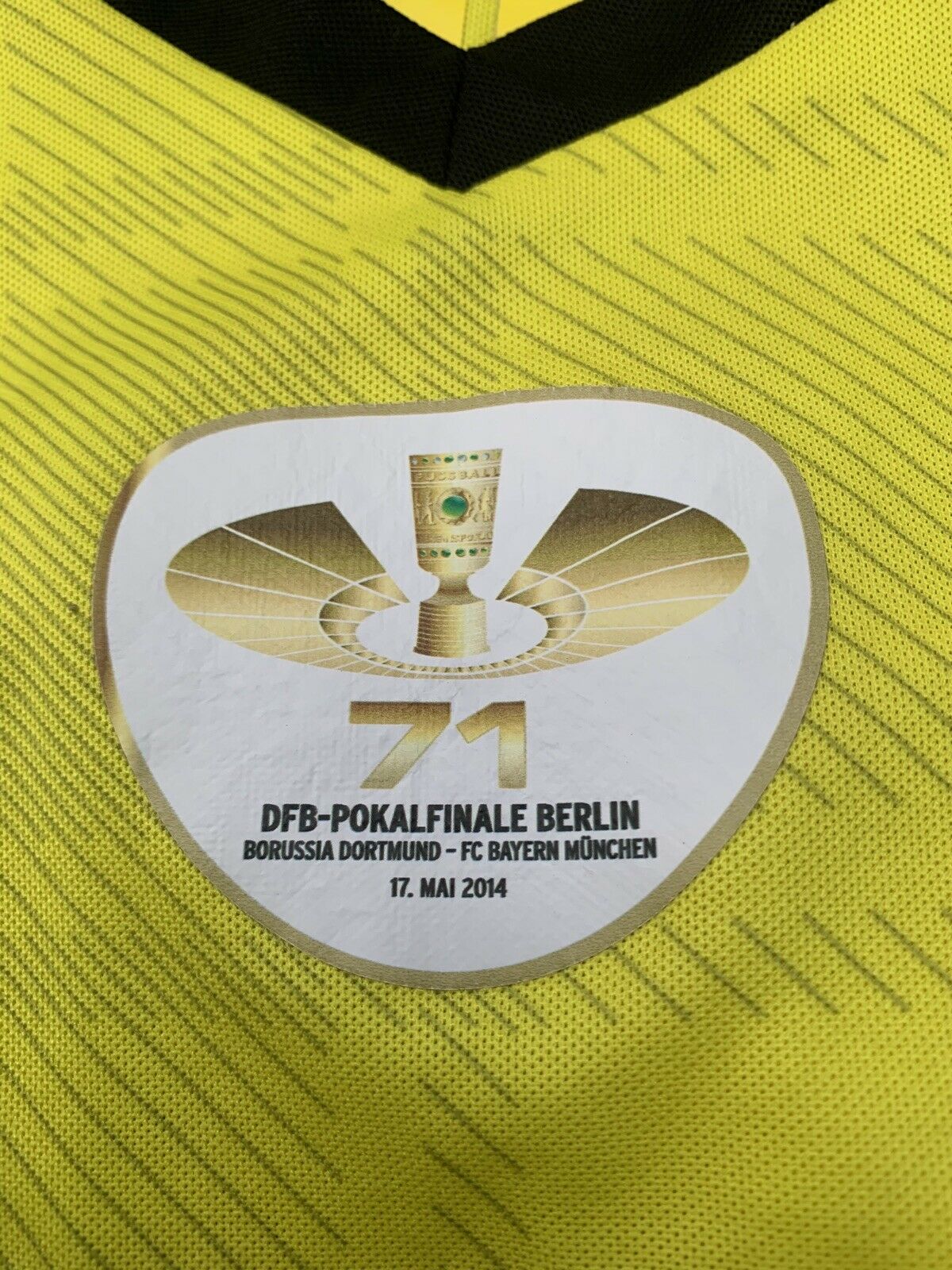 Puma Borussia Dortmund Trikot mit der original Beflockung 11 Marco Reus aus der Saison 2013/2014 in der Heim variante des BVB, verfügbar ist es jeweils 1 x in der Herrengröße S-M Kinder 176 cm, B-Ware ist es eigentlich nicht, aber es ist halt nicht Neu. Ansonsten bitte das Trikot von den Bildern nachdem 5 übernehmen, alle mit blauen/Lila Hintergrund je nach PC Einstellung, mit Bundesliga Patch und DFB Pokal Finalpatch.