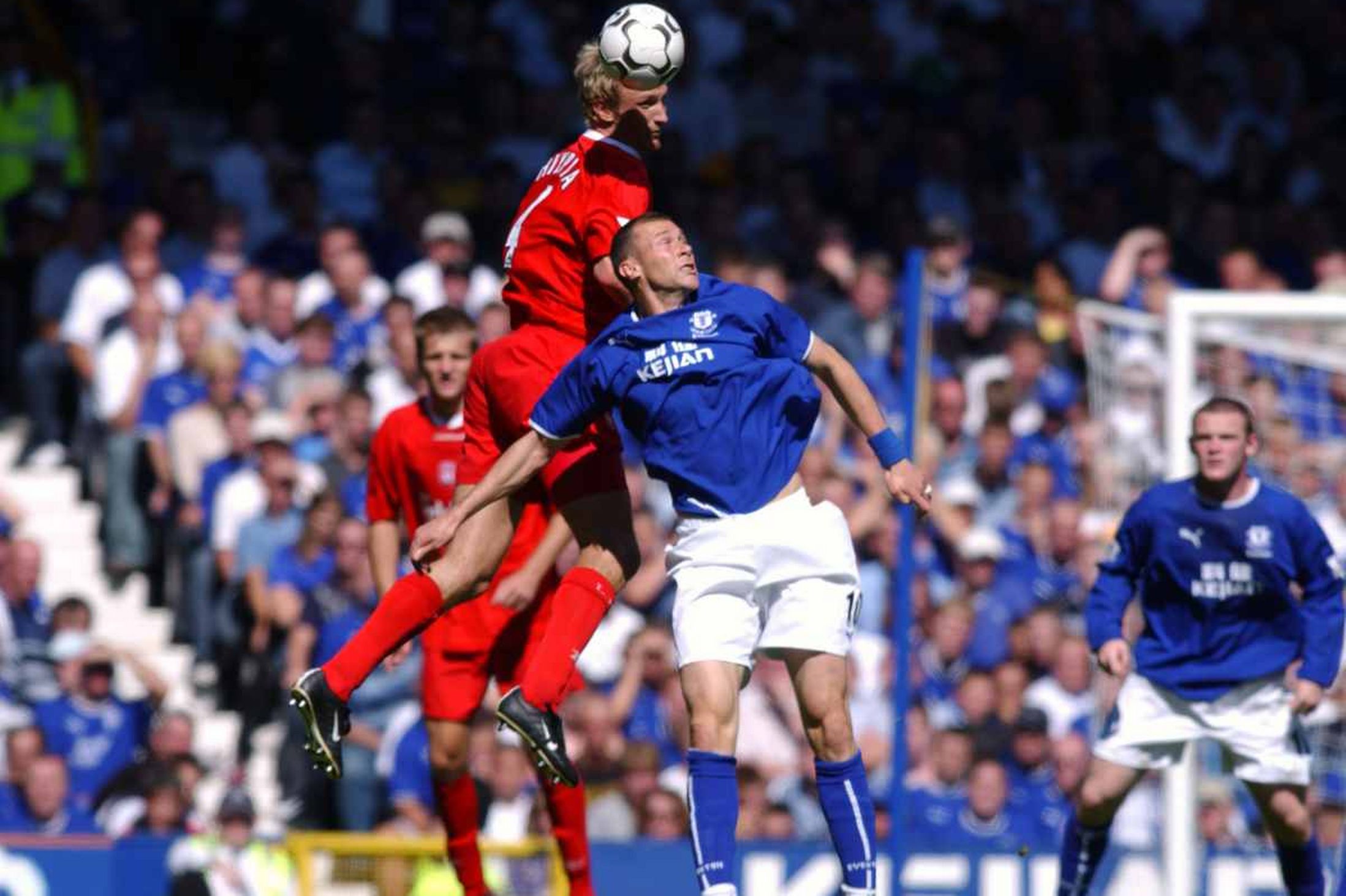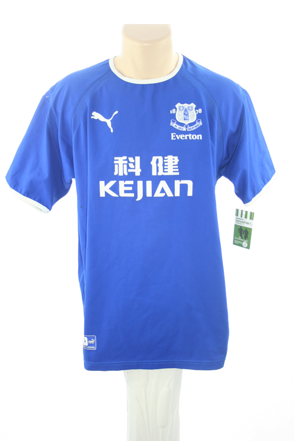 Puma FC Everton Trikot aus der Saison 2003/04 mit dem Brustsponsor Kejian in der seltenen Heimtrikotversion in der Farbe Blau, ist hier noch 1 x in Herrengröße S verfügbar.