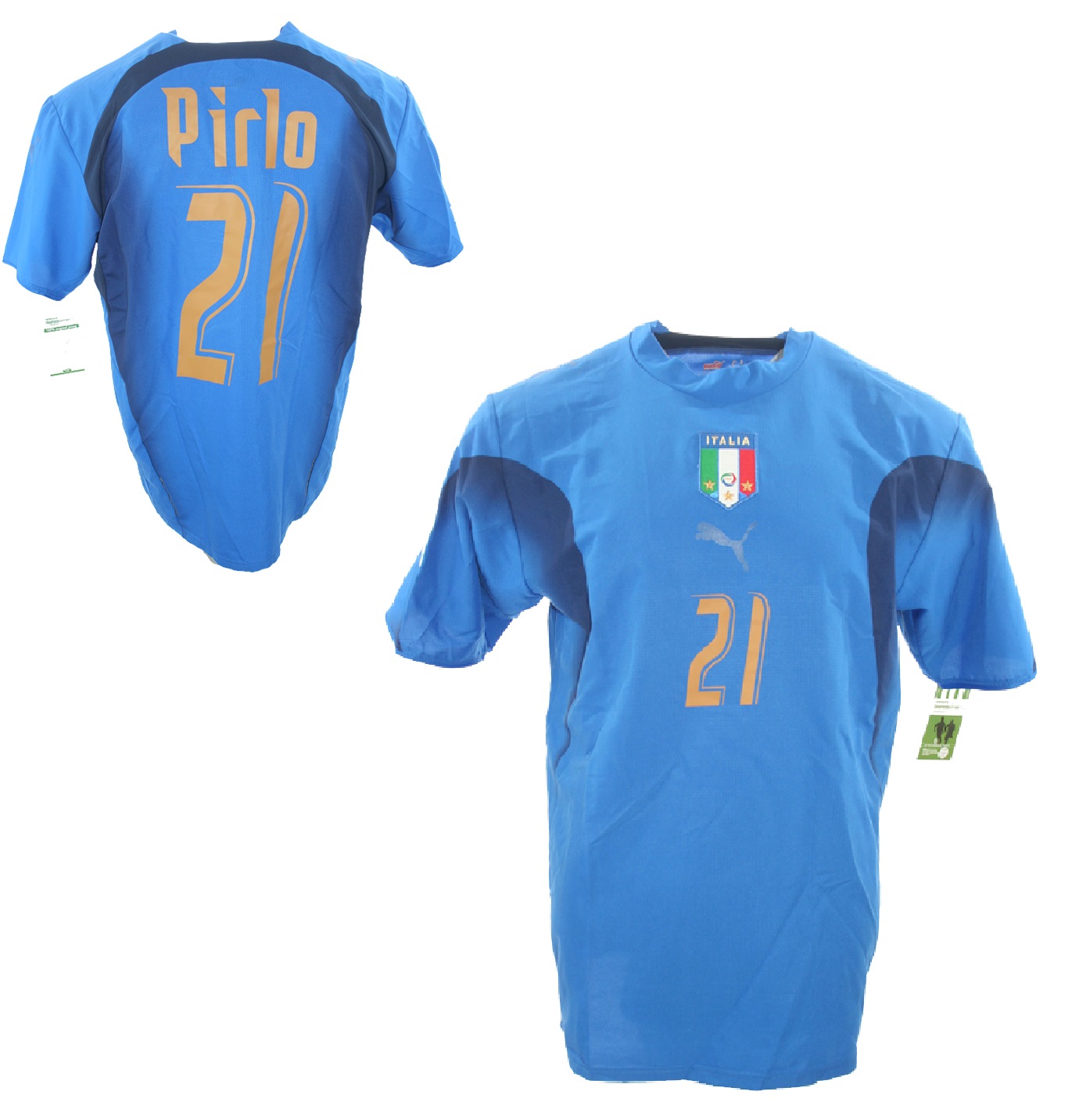 Puma Italien Trikot von der NUmmer 21 Andrea Pirlo aus der Saison 2006/07 in den Herrengrößen S/L und XL. Es sind original Puma Trikots, original aus 2006, der wohl letzte Bestand an diesen Trikots weltweit!, in jeder Herrengröße ist aber maximal 1 Trikot vorhanden.