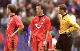 unten auf den Bildern in der Fußball Bundesligasaison 2002/03, Daniel Stendel mit Jörg Sievers und Fredi Bobic.