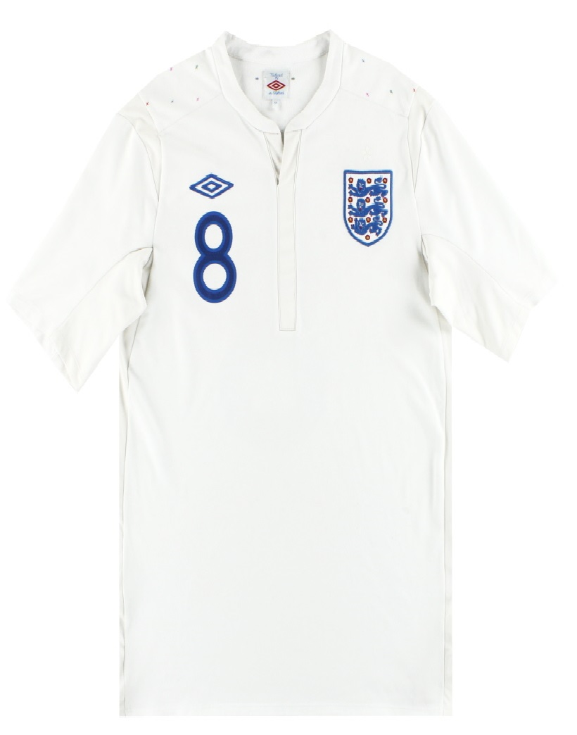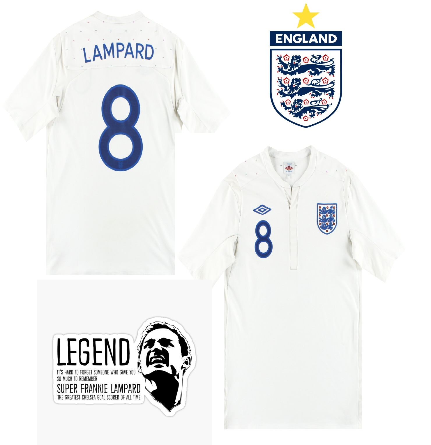Umbro England Fußball Trikot mit der original Beflockung 8 Frank Lampard von der WM 2010 in Südafrika in der Heimtrikotversion in der Farbe weiß und verfügbar in der Herrengröße 44" = L. Es ist das Specialshirt, Sondertrikot der Engländer, sehr selten.