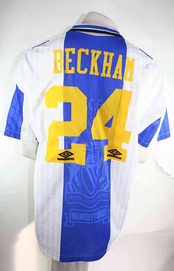 Manchester United Trikot von Umbro mit Brustsponsor Sharp sowie der original Rückennummer von der Nummer 24 David Beckham in Größe XL.