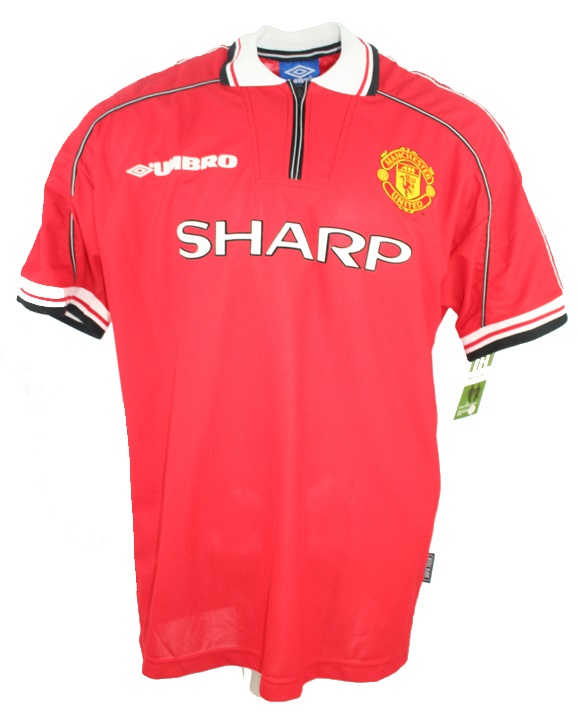 Umbro Manchester United Trikot von der Nummer 7 David Beckham aus der Saison 1998/99 mit dem Brustsponsor Sharp verfügbar in den Herrengrößen M oder XL ist das sehr seltene Trikot noch einmal verfügbar, es ist schon ewig in meinem Besitz, daher 100 % original, meistens erkennt man es an den ärmellängen, die nachgemachten sind halt nicht 100 %, der Kragen und der Ärmel sind für den Laien immer schnell zu erkennen, ob es oriignal ist oder nicht. Das Etikett ist von mir, da steht nur drauf, welches Trikot es ist und interne Angaben jeglicher Art.