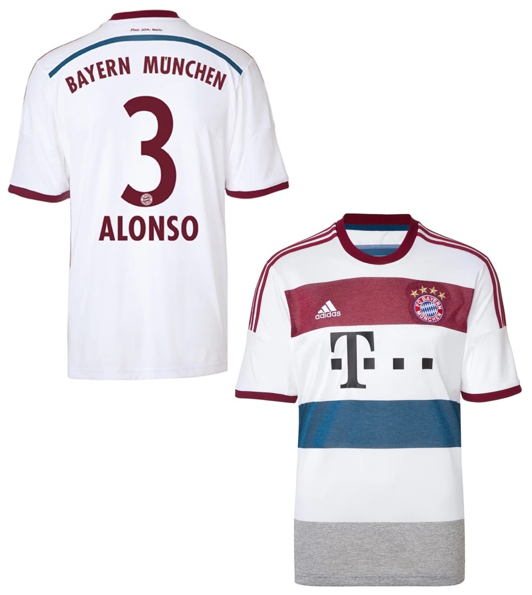 Adidas FC Bayern Munich jersey 3 Xabi Alonso 2014/15 away white men size M = medium, the nameset have some stains, please check that last pictures here