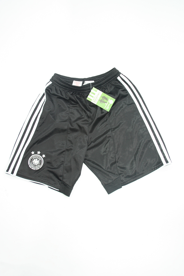 Original Adidas Germany (DFB) shorts from the 2014 World Cup season, in black. This is the extremely rare home version, featuring the white stripe at the bottom.