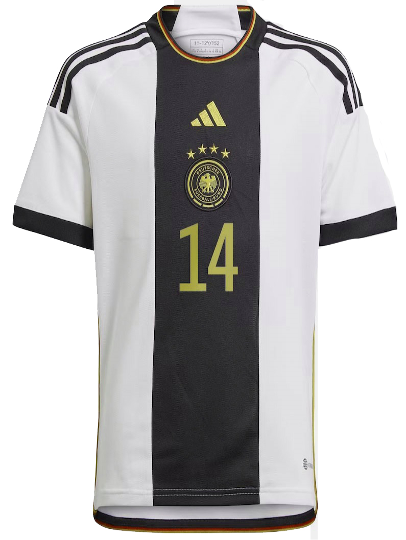 Adidas Alemania camiseta 14 Jamal Musiala Copa del Mundo 2022 blanco/negro nuevo senor M