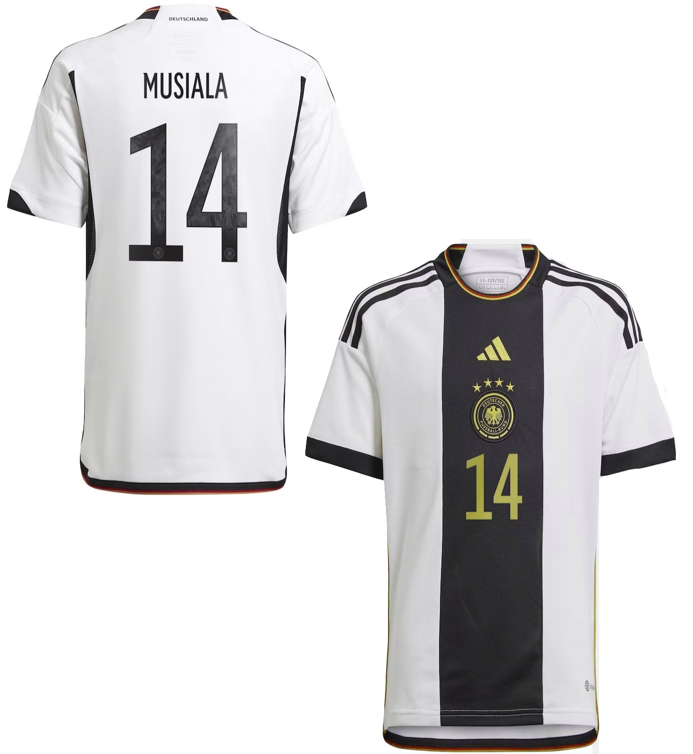 Mobile Preview: Adidas Alemania camiseta 14 Jamal Musiala Copa del Mundo 2022 blanco/negro nuevo senor M
