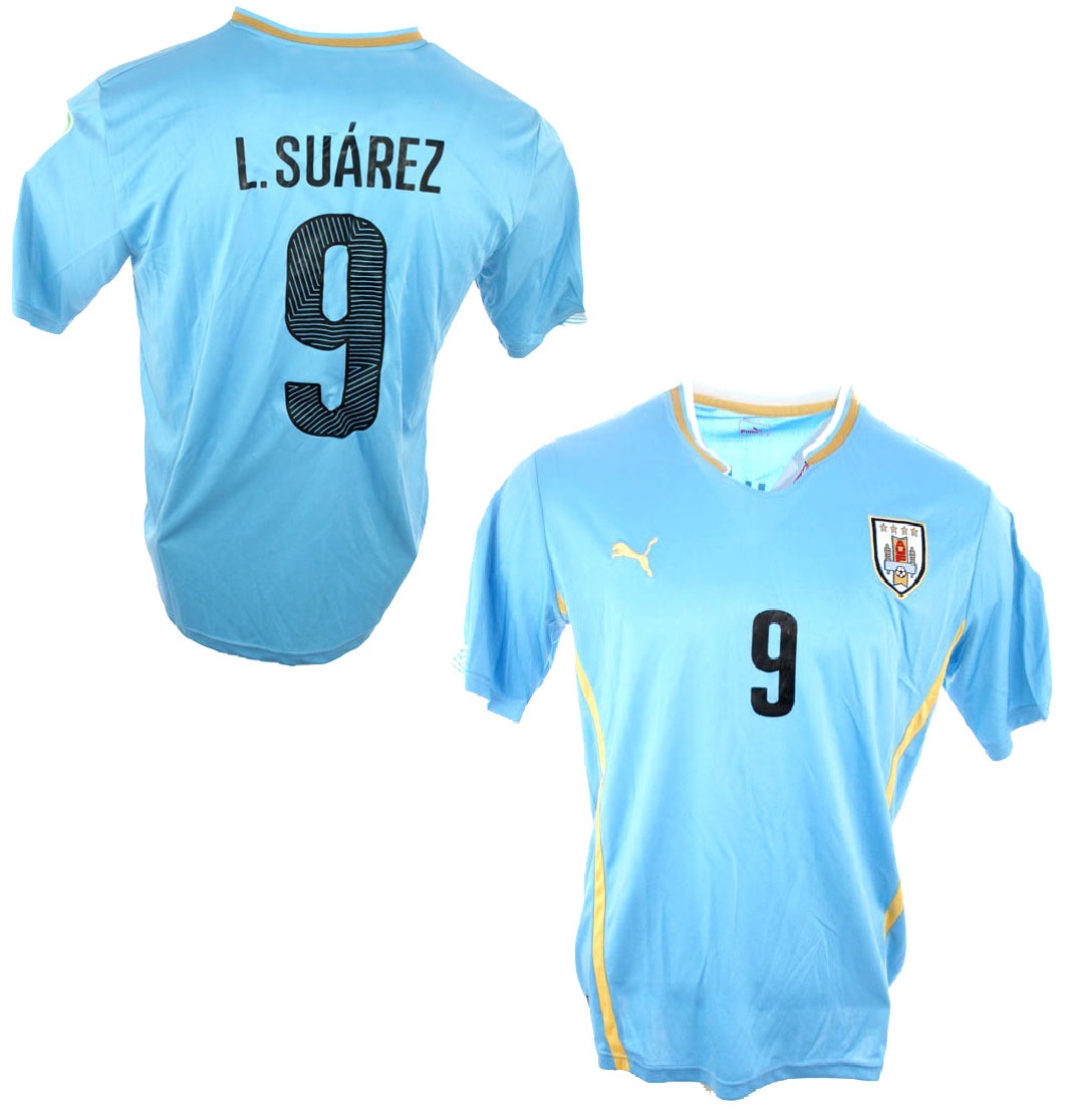 Puma Uruguay camiseta 9 Luis Suarez copa del mundo 2014 home Matchworn senor L